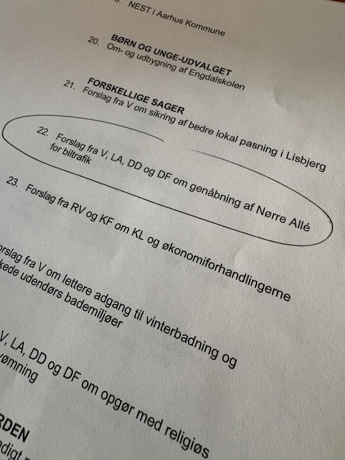 Vores forslag i Aarhus byråd blev modtaget med nysgerrighed, men desværre sendt til hjørne - både S,SF og Konservativ ville ikke forholde sig konkret til forslag, men blot henvise til en analyse - i stedet for straks at få genåbnet busslusen i Nørre Alle